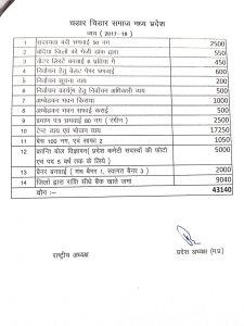 प्रांतीय संगठन का आय व्यय का विवरण वर्ष 2017-18